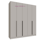 Пятистворчатый шкаф шириной 2 метра в цвете кашемир с тремя выдвижными ящиками внутри. Шкаф без зеркал внутри разделен на три отсека: два отделения со штангами для одежды, длина каждой штанги 77 см, и отсек с 4 полками под которыми расположено 3 выдвижных ящика. Отделения со штангами для одежды на плечиках дополнительно укомплектованы двумя полками шириной 77 см. Ширина полок в центральной части шкафа 38,2 см. Ширина каждой из пяти дверей шкафа 39,6 см, двери с накладными ручками черного цвета. Шкафы Мадрид высотой 230 см может быть дополнен антресолью высотой 30 или 40 см, антресоли покупаются отдельно.