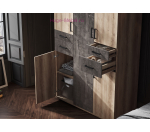 Распашной 3-х створчатый шкаф для одежды с полками, штангами и 4 выдвижными ящиками на шариковых направляющих. Высокий и вместительный шкаф Нельсон выпускается в двух цветовых решениях: дуб каньон/железный камень и дуб крафт белый.