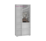 Шкаф для гостиной с четырьмя отделениями позволит разместить все нужные вещи и посуду. Посуду можно расставить на стеклянных полках витрины, а остальные предметы расположить за глухими створками. Фасады в рамочном профиле с эффектом патины, стекло с глубоким фацетом и гравированным геометрическим рисунком добавят мебели красоты и изящества.