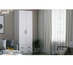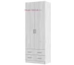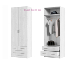 Недорогой шкаф с выдвижными ящиками светлого цвета. Внутри шкафа штанга для одежды на плечиках и полка. Благодаря компактным размерам и вместимости, шкаф подойдет как для небольшой прихожей, так и для комнаты.