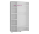 Трехстворчатый шкаф шириной 135 см с зеркальной створкой из серии модульной мебели Ливорно. Внутри шкафа отсек с 4 полками и отделение с металлической штангой для одежды на плечиках.