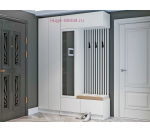 Шкаф для прихожей Руэлла со штангой и полками для хранения одежды и обуви. Шкаф белого цвета шириной 90 см и высотой 220 см, внутри шкафа полки шириной 30 см и штанга длиной 56 см. Створки без ручек, шкаф оснащен толкателями для удобства открывания.